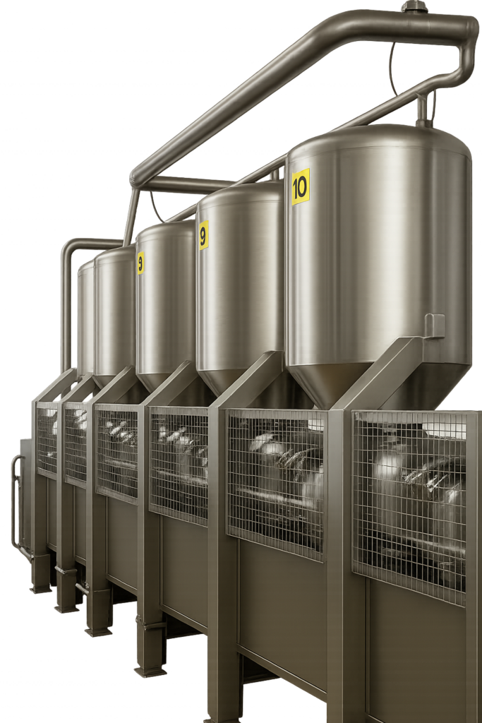 Notre groupe de soutirage sous vide, référence pour le moulage de nombreux fromages AOP tels que Comté, Beaufort ou des fromages type Parmigiano Reggiano ou Grana, garantit un moulage rapide et précis. Le soutirage par vide préserve le grain de caillé, tandis que le moulage sous sérum assure des fromages sans ouvertures, alliant qualité et rendement optimal.